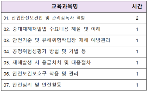 산업안전보건법 및 중대재해 처벌법에 대처하고, 안전기준, 응급처치 등 관리감독자 교육을 이수하여